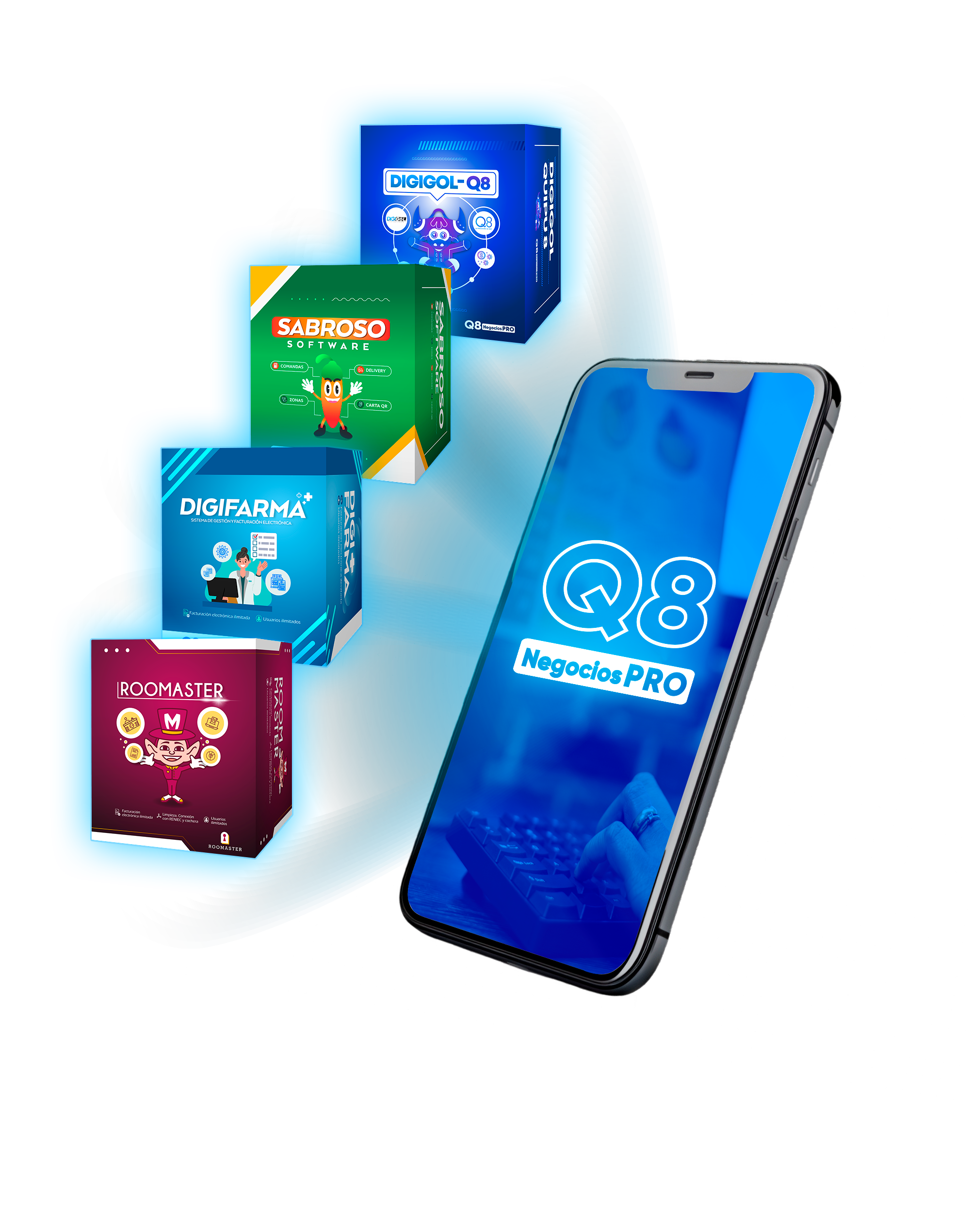 Con Q8 Negocios Pro integras Sabroso software, Digigol y Roomaster en una sola plataforma. Monitorea tus ventas, gestiona inventarios y dirige tu negocio en tiempo real, directamente desde tu celular.